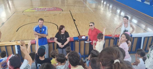 Στο πλαίσιο αυτό οι αθλητές μίλησαν στους μικρούς κατασκηνωτές ηλικίας δημοτικής εκπαίδευσης για τα οφέλη του αθλητισμού, τις εμπειρίες τους μέσα από τους αγώνες και την ενασχόλησή τους με τον αθλητισμό και απάντησαν σε ενδιαφέρουσες ερωτήσεις των παιδιών.